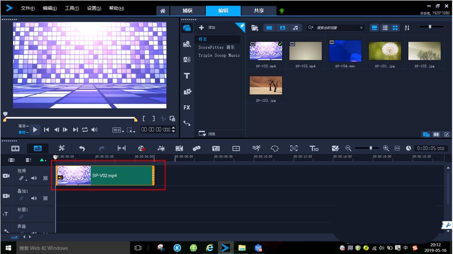 4、第二个是“叠加轨”,可以将素材叠加到视频轨内容之上