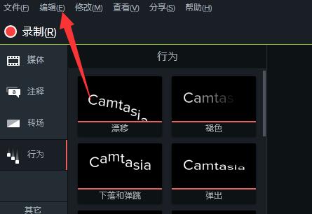 打开Camtasia软件,点击上方菜单栏中的的【编辑】,如图,