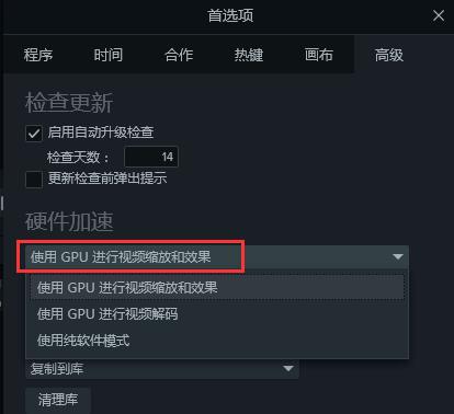 将【硬件加速】设置为使用纯软件模式,重启Camtasia软件,再次导入视频,发现黑屏消失了。