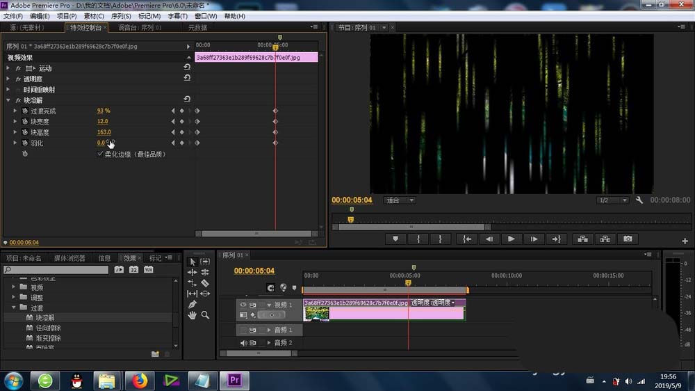 premiere中想要给素材添加块溶解效果,该怎么添加这个效果呢?下面我们就来看看详细的教程。