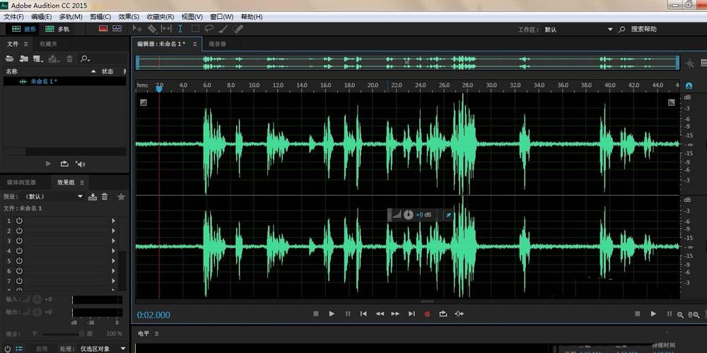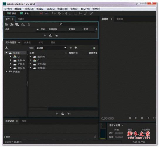 1、打开Adobe Audition CC 2015,直接1点录音或导入已录好的音频,录音时在开头或结尾录几秒音,方便降噪处理