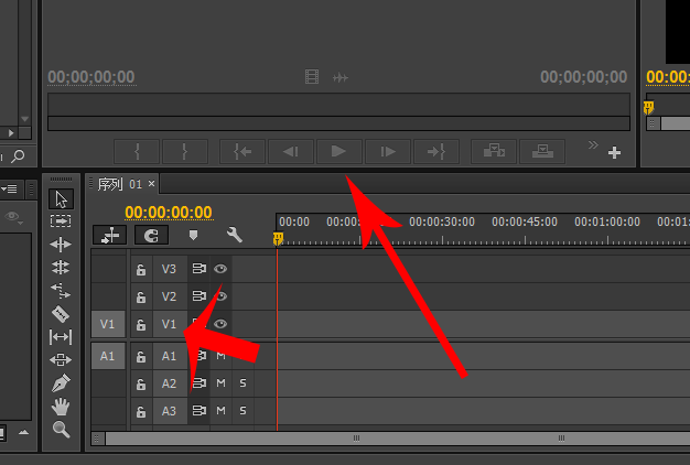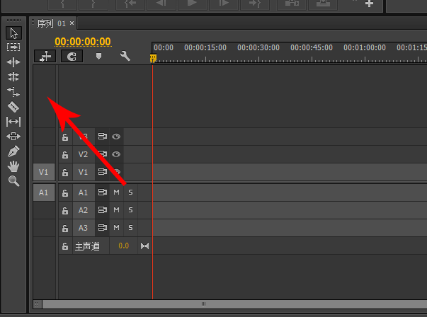 1、打开pr的工作区,然后查看“序列”面板,这时可以看到系统设置的3条音频和3条视频轨道,然后将鼠标移动至“序列”面板的上边沿,然后点击鼠标向上拖动