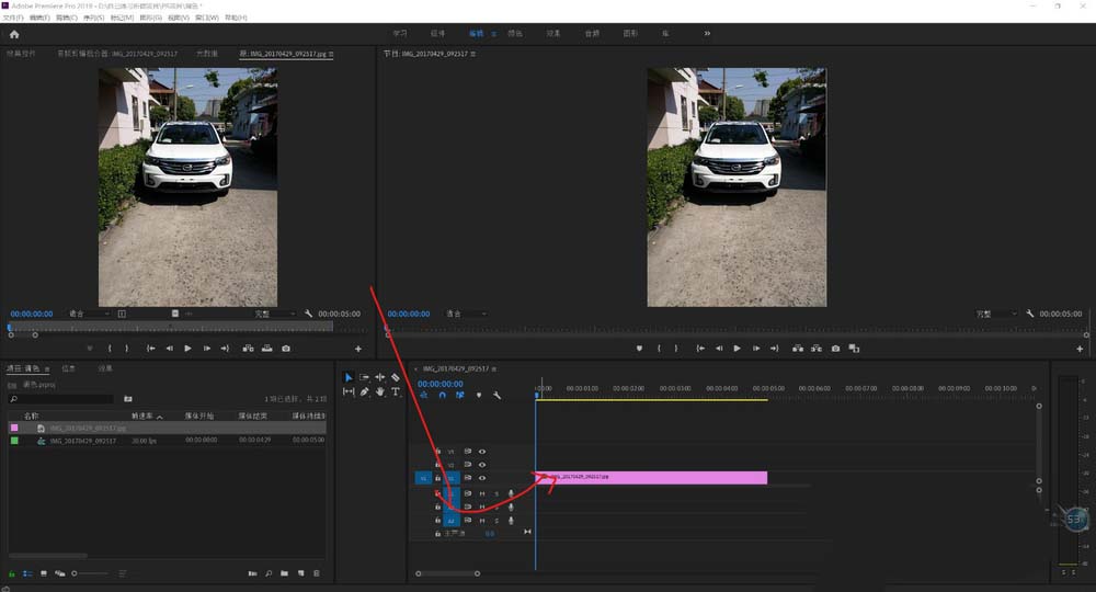 3、将素材 从项目面板拖动到时间线面板