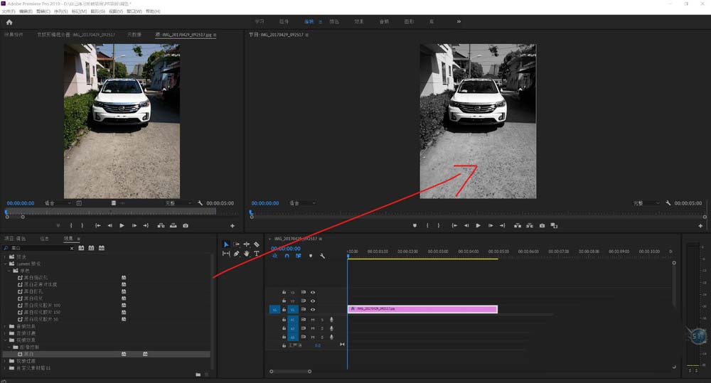 Premiere视频怎么添加黑白渐融转场效果?