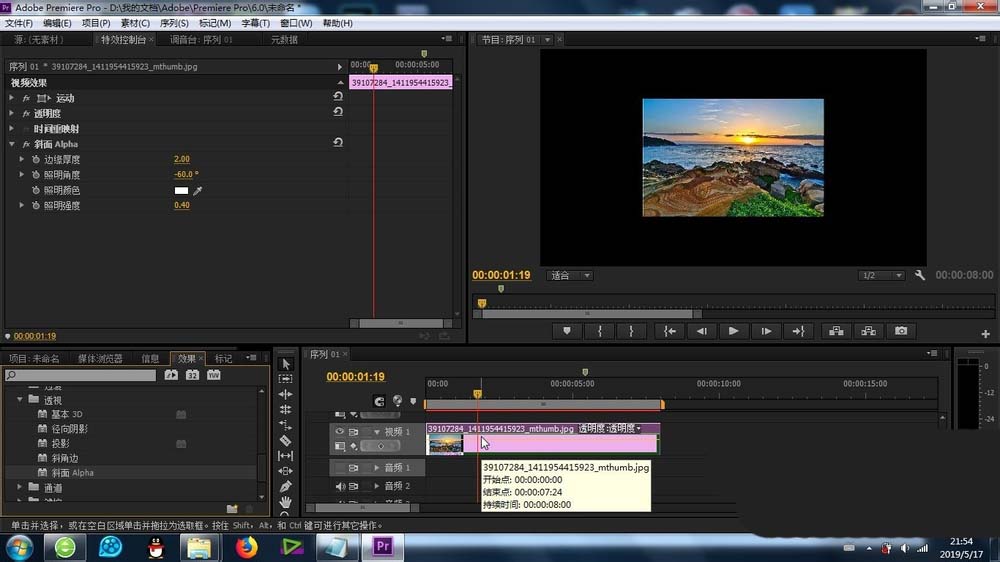 premiere中想要使用斜面alpha效果,该怎么使用这个效果呢?下面我们就来看看详细的教程。