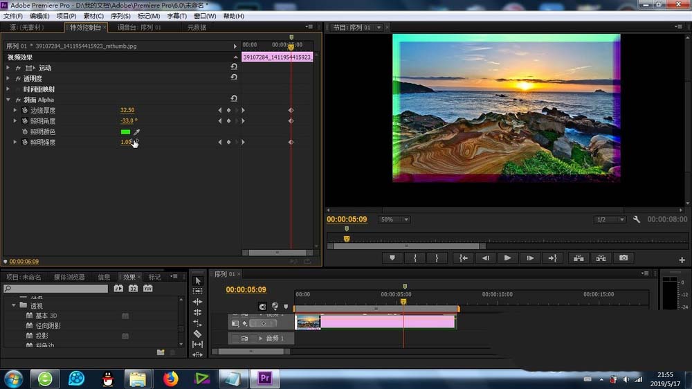 以上就是premiere给素材添加斜面alpha效果的教程,希望大家喜欢,请继续关注脚本之家。