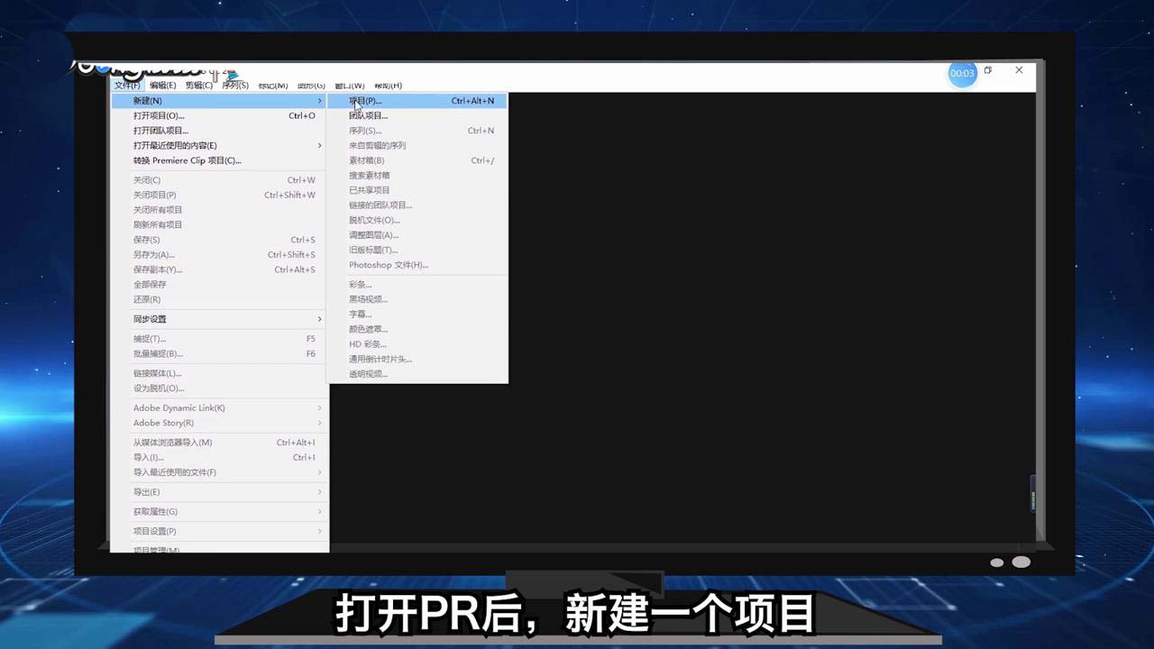 1、打开PR软件后,新建一个项目,在文本框输入项目名称。
