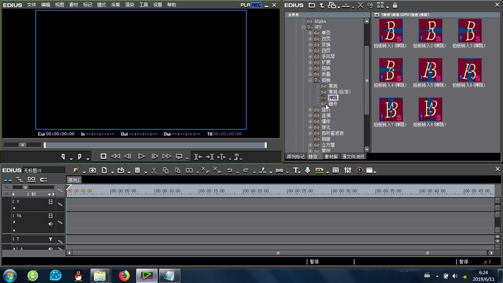 1、首先就是“弹跳拍板”的位置是在特效里面的-转场-GPU-拍板-里面,里面有几种类似的效果(大同小异)供我们挑选使用