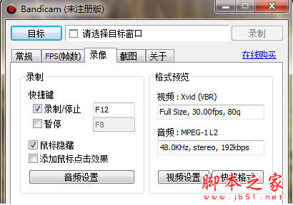 Bandicam屏幕录制全屏窗口的使用教程