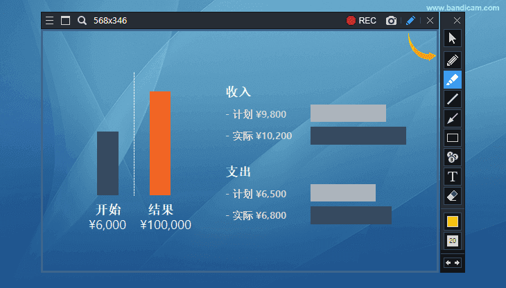 录制视频时,可以划线、荧光笔、画框、点击鼠标动画效果等。