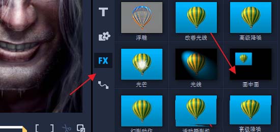 2、接下来,在滤镜中找到画中画滤镜,将画中画滤镜拖拽到这个图片上。