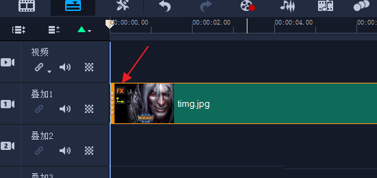 1、我们打开会声会影2018中文版软件后,先把图片放到覆叠轨里,并且将图片调整到屏幕大小。