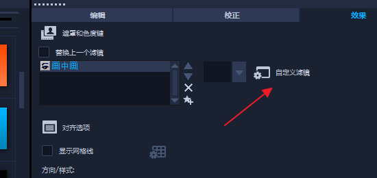 3、接下来,我们点击属性,点击自定义滤镜,我们就开始了对这个画中画的自定义。