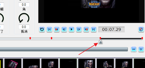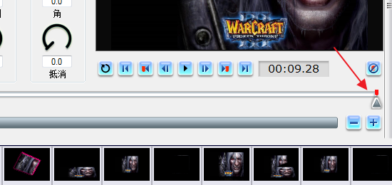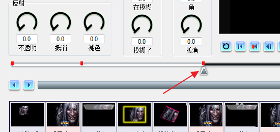 7、接着,我们将播放帧拖拽到某个位置,然后将尺寸设置为0。