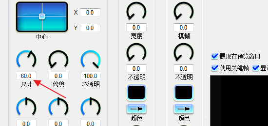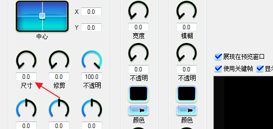 6、随后,我们先将播放帧拖拽到起始位置,然后将尺寸调整到0。