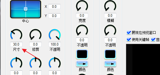 8、然后,我们将播放帧拖拽到中间的位置,将尺寸设置为30。