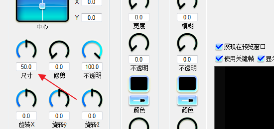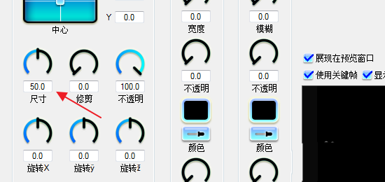 10、然后,我们将播放帧拉拽到某个位置上,将尺寸设置为50。