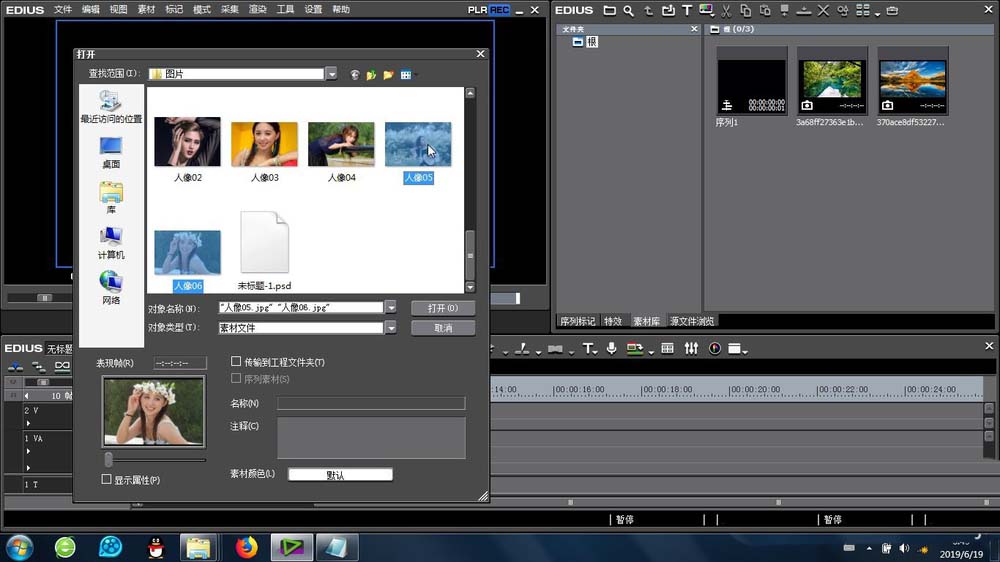 2、将素材库里的图片或者视频拖拽到时间线上的视频轨道