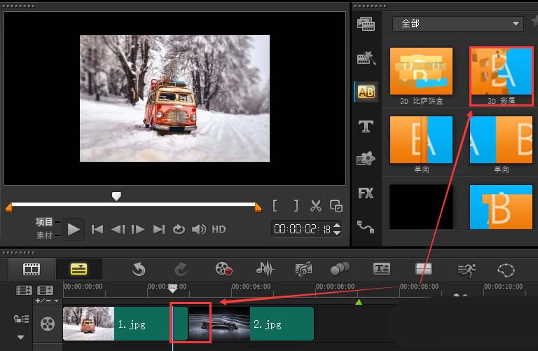 会声会影编辑视频的时候,素材之间的过渡经常用转场效果,设置转场是一个比较常见的事情,该怎么给素材添加3D彩屑转场的效果呢?下面我们就来看看详细的教程。