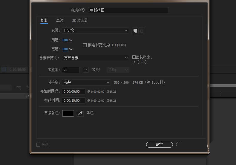 1、打开AE软件,新建合成,命名蒙版动画,调整相应的参数。