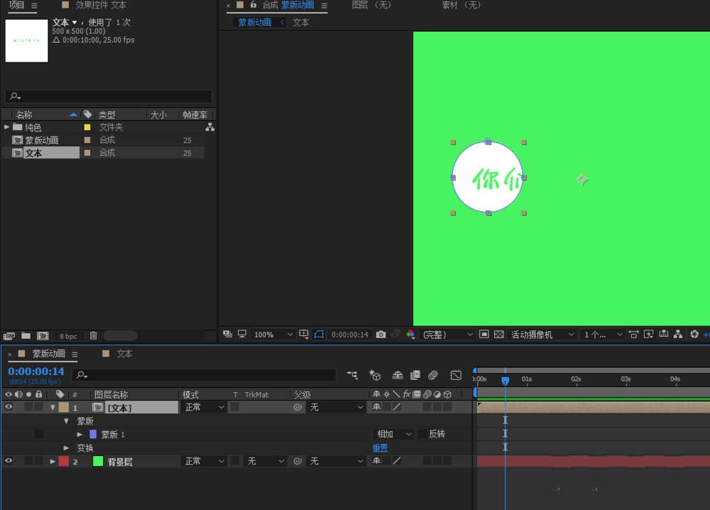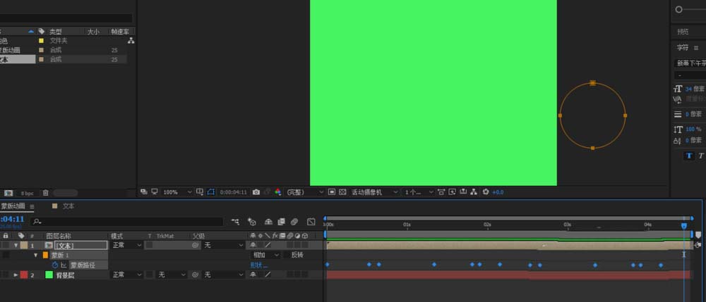6、选中预合成图层,再用椭圆工具按下shift键绘制一个正圆蒙版;
