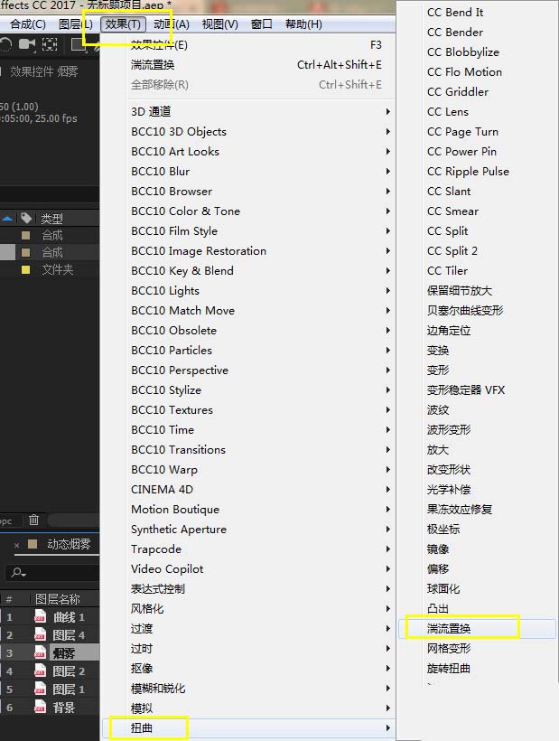 4、轩重工烟雾图层添加湍流置换效果;效果-扭曲-湍流置换;