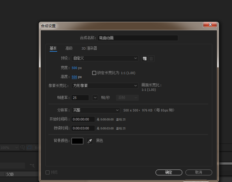 1、打开AE软件,新建合成,命名弯曲动画,调整相应的参数。