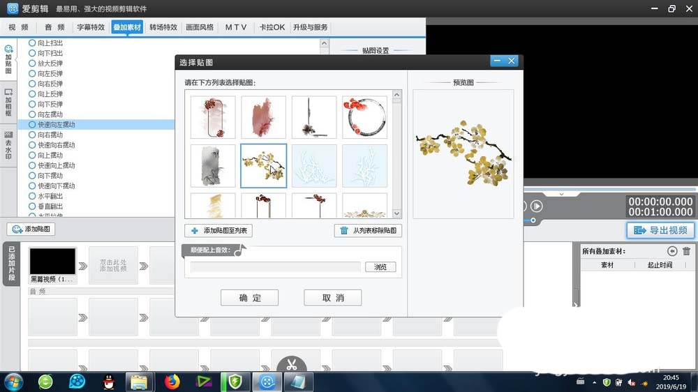 3、选择合适的贴图,确定之后,贴图就会出现在视频预览区域