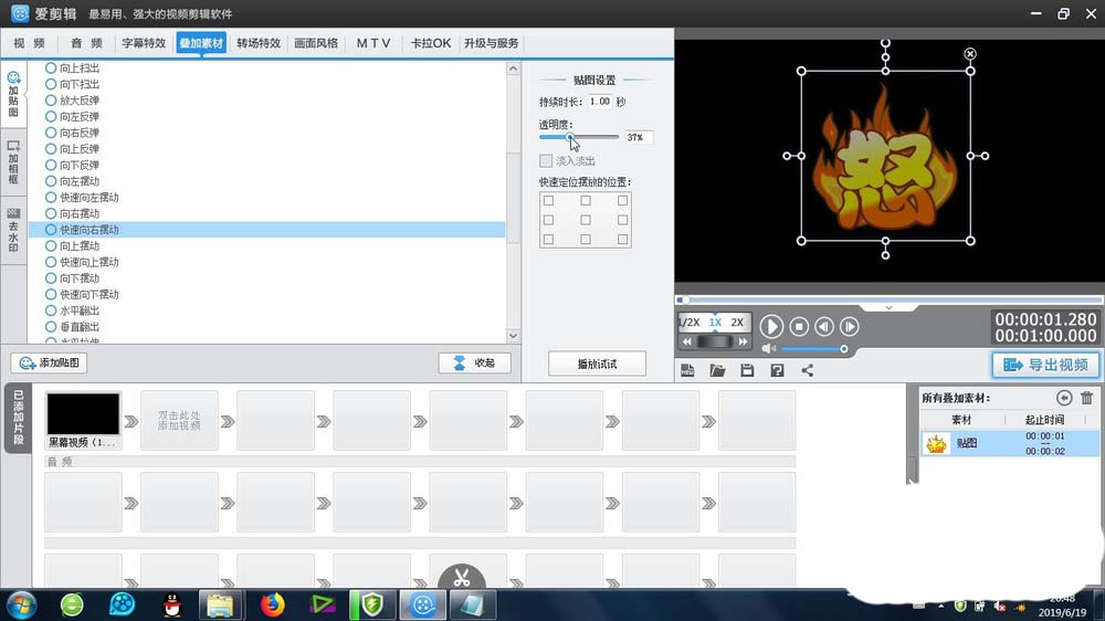 4、我们可以修改贴图的各种属性-位置关系、大小、透明度以及持续时间