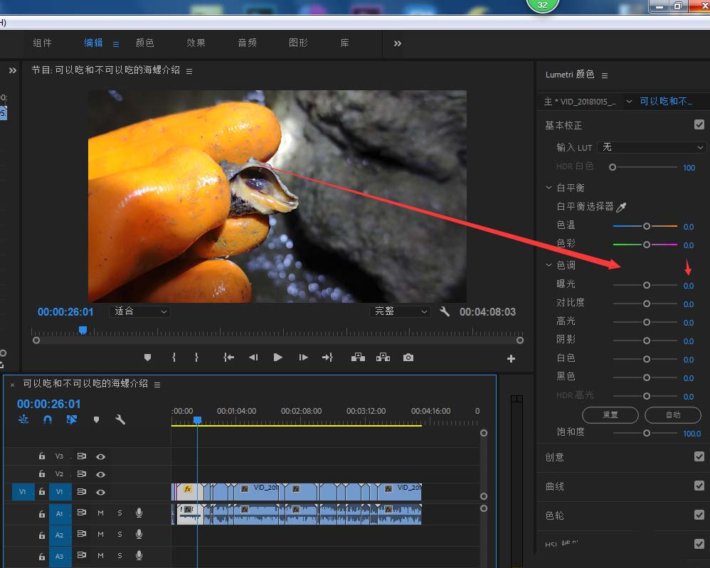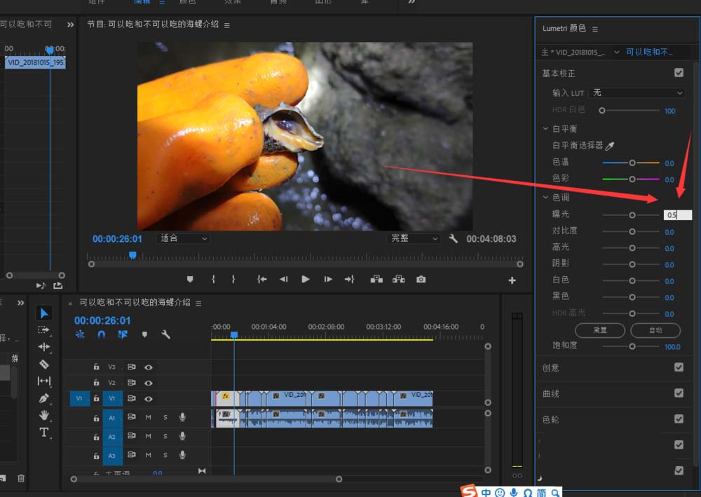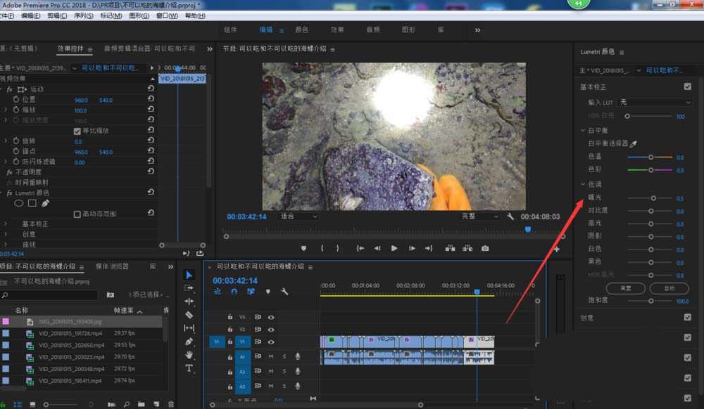 2、在pr软件的最上面一排选择 窗口 找到Lumetri颜色,打开颜色。在 颜色的下面色调种找到曝光