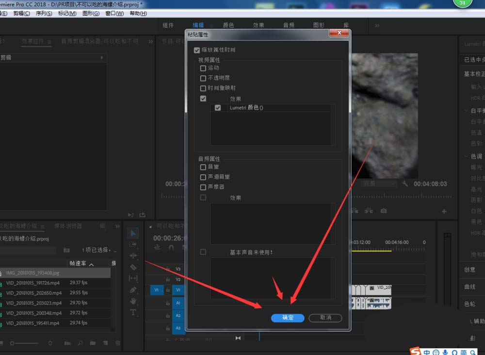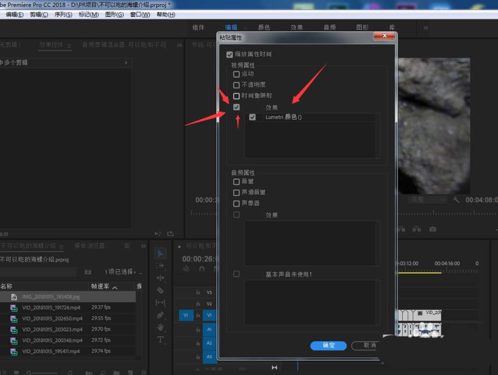 5、然后右键选粘贴属性。点一下之后出面粘贴属性的界面,这时候勾选效果:颜色 。其他不选,然后 确定就大功告成了。确定后就自动批量调整曝光了