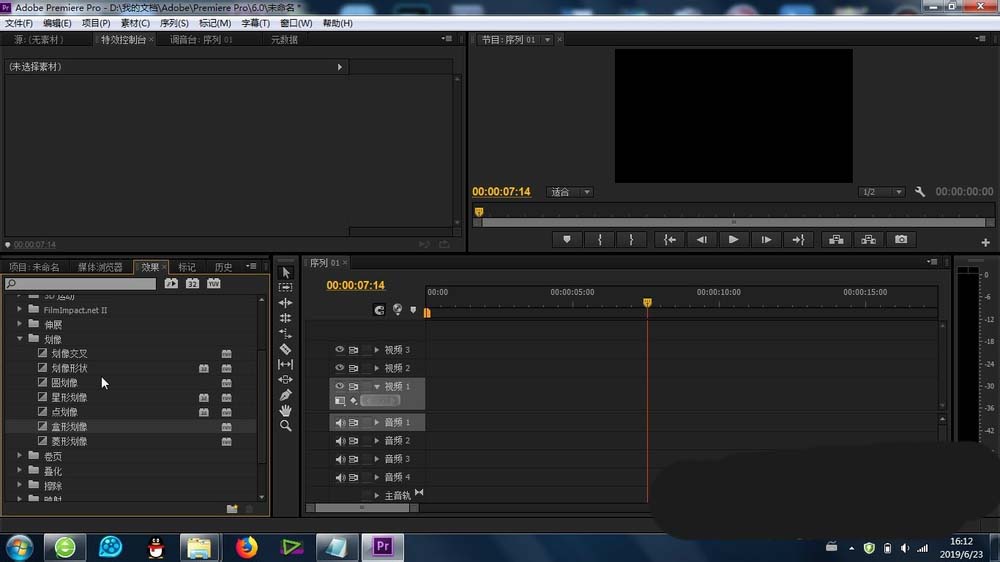 1、首先就是这个“盒形划像”的功能是在-效果-视频切换-划像-里面