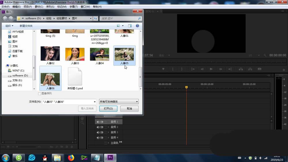 2、在premiere的素材库中,导入图片或者视频素材