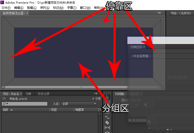 pr中想要让浮动面板返回到原来的地方,需要先搞清楚停靠区和分组区,弄清楚之后才可以准确的将浮动面板放回去,该怎么让面板归位呢?下面我们就来看看详细的教程。