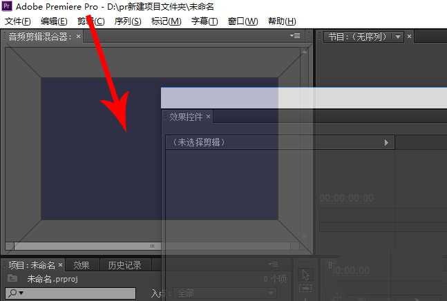 1、打开pr工作界面,按住浮动面板的控制按钮,然后将其拖动至原来位置所在方向