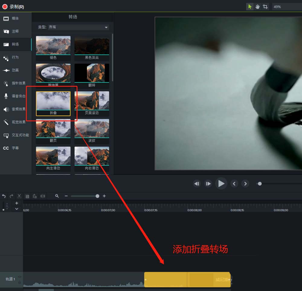 Camtasia 9中自带了一个转场特效效果叫折叠过渡效果,该怎么使用这个效果呢?下面我们就来看看详细的教程。