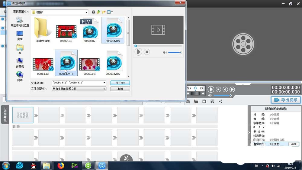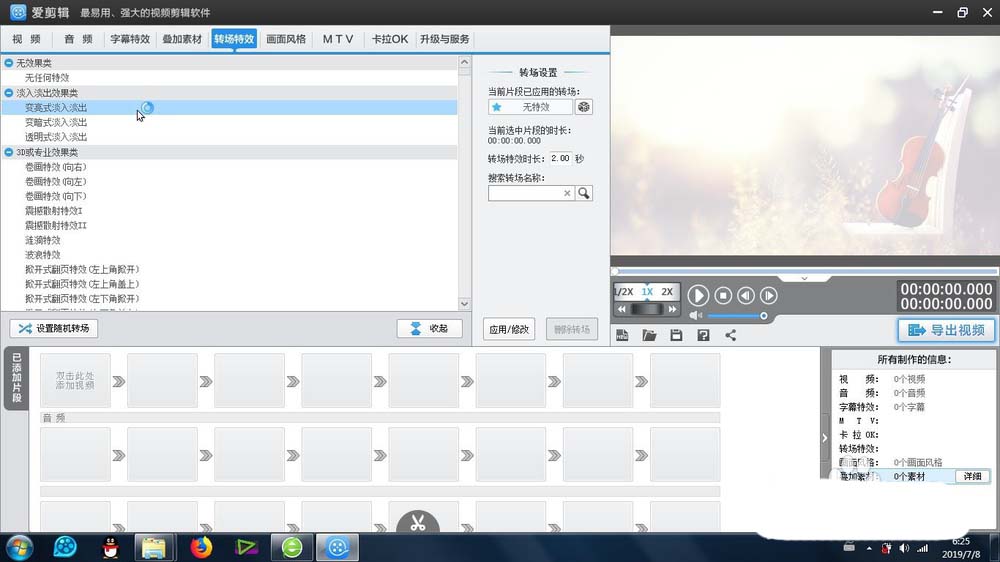 4、在软件的上方工具栏里面,预览我们刚才找到的:转场特效-淡入淡出效果类