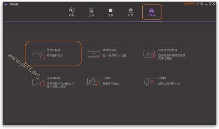 在您的电脑中下载,安装和启动万兴优转。去到顶部的工具箱 部分,然后选择图片转换器选项以开始。