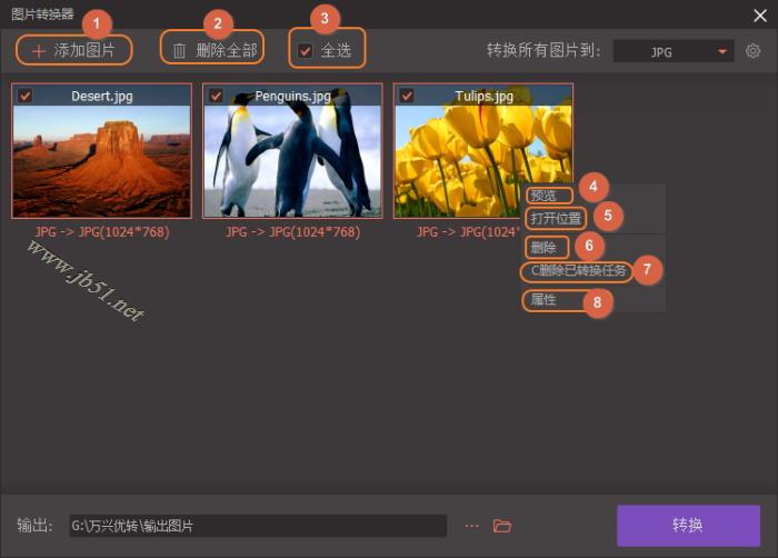 2. 删除全部:删除已添加到转换器的所有图片。