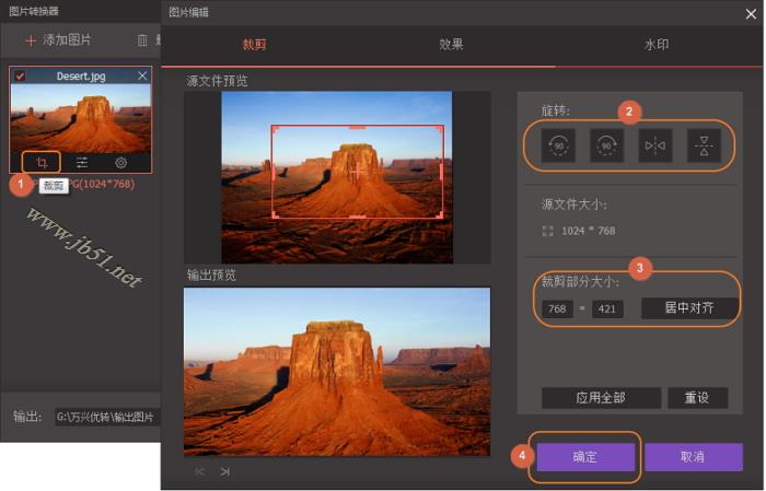 裁剪图像:单击缩略图上的裁剪按钮,您将获得裁剪和旋转图片的窗口。单击确定按钮以保存更改。