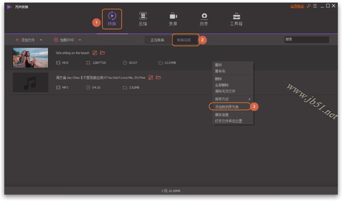 切换标签页转换 > 转换完成寻找您要刻录的视频,右键点击并选择添加到刻录列表。