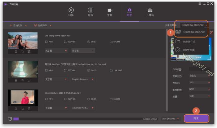 万兴优转将视频刻录至DVD的方法