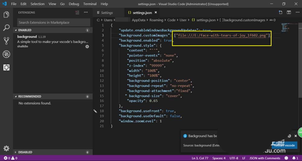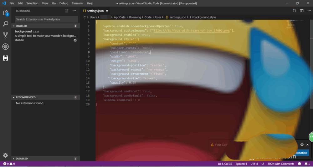 以上就是vscode设置背景图片的教程,希望大家喜欢,请继续关注脚本之家。