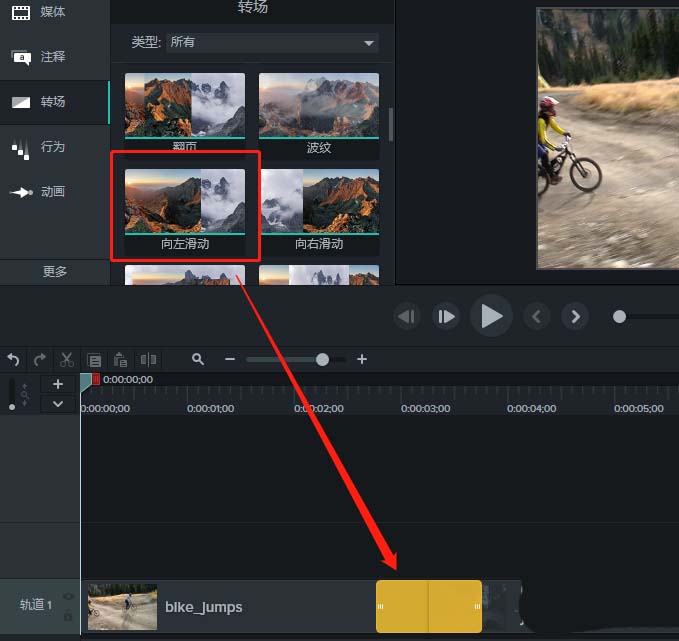 以上就是Camtasia9给素材添加向左滑动的转场效果的教程,希望大家喜欢,请继续关注脚本之家。