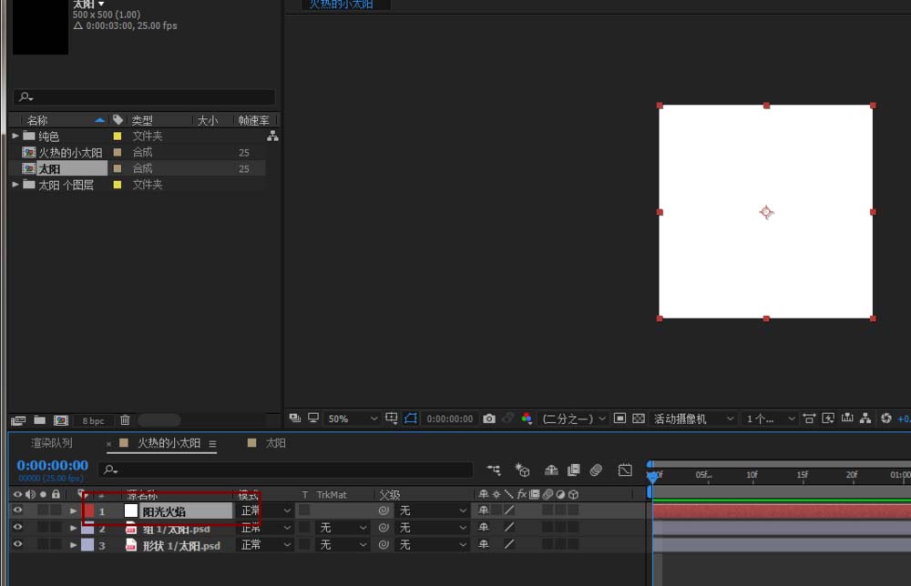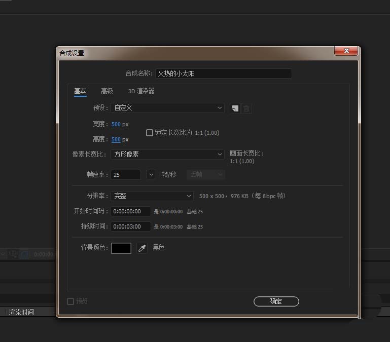1、打开AE软件,命名火热的小太阳,调整相应的参数。