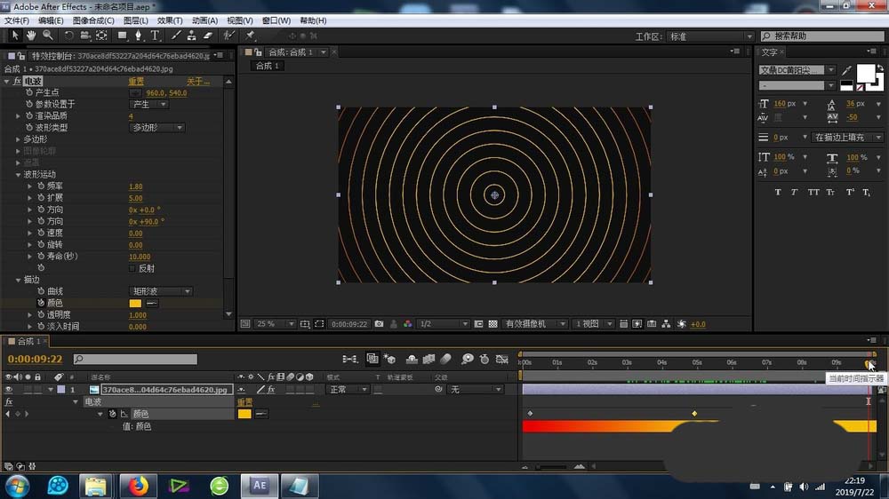 7、可以设置这些电波参数的关键帧变化,形成电波关键帧的变化动画