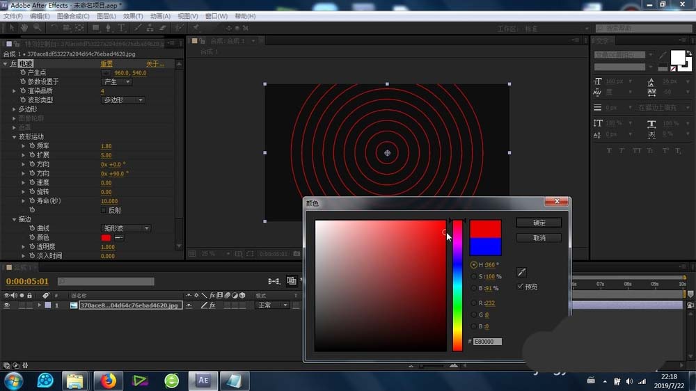 6、可以打开这个电波效果的设置参数,进行-混合模式、透明度以及颜色等重要参数的调整