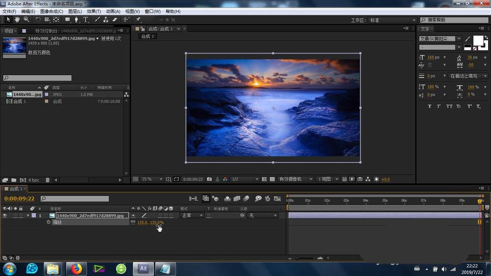 1、首先就是素材的导入,这个导入的方法很简单,不再赘述,将素材库的素材拉至合成里面的时间线上