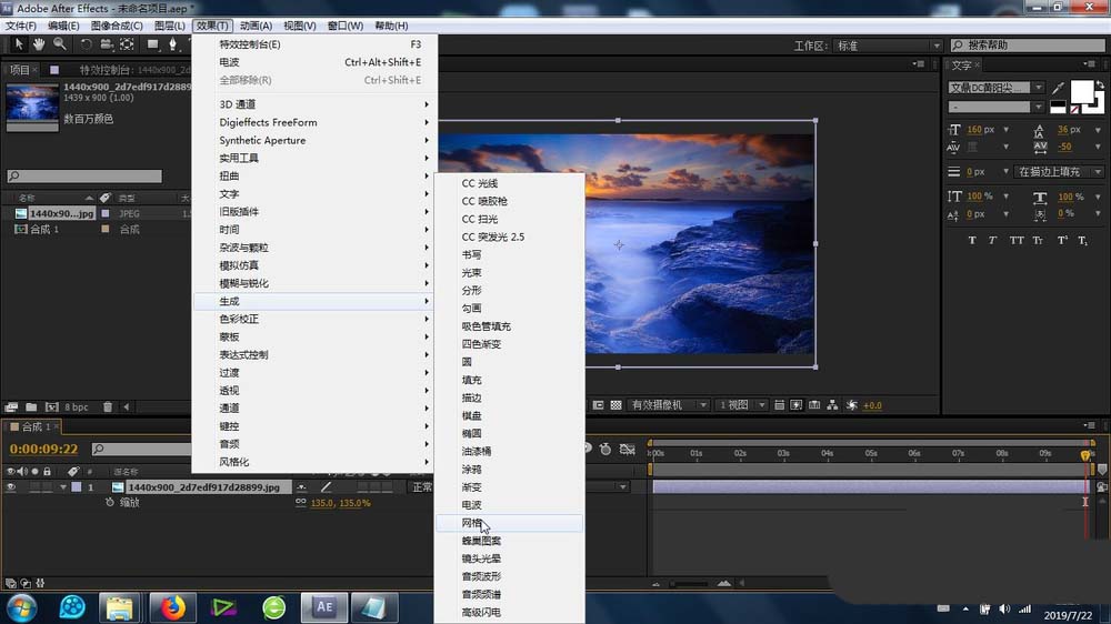 3、选中素材,右键选择添加的是:效果-生成-网格