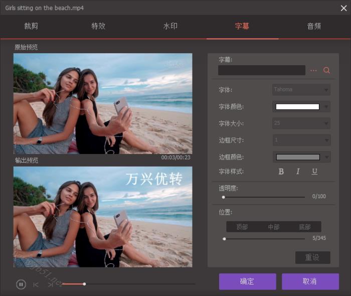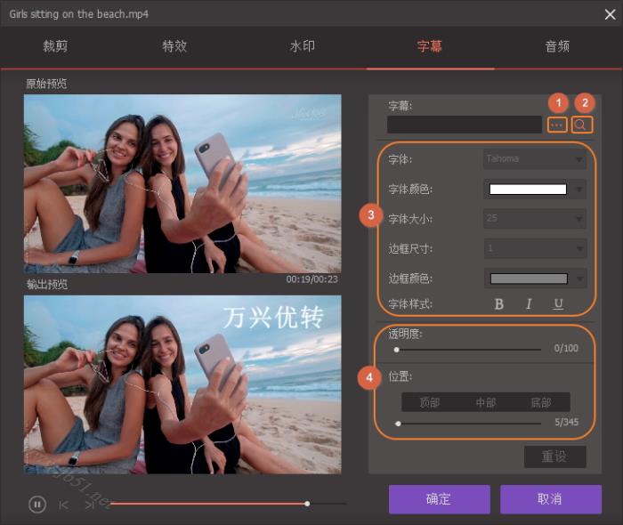 现在您可以选择字幕的颜色、大小、字体以及更多,您还可以根据您的喜好调整字幕的透明度和位置。点击确定即可保存设定。